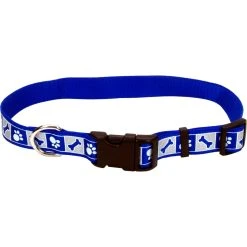 Help protect your pet at night with this stylish reflective collar. Featuring a fun, reflective paws and bones design on a solid-color nylon base, this collar reflects oncoming light for extra visibility and safety. Designed to accommodate a variety of small to medium breed dogs, this 5/8 in. collar easily adjusts in size from 12 in. up to 18 in. in length. Manufactured with soft, high quality nylon, this collar has a curved, snap-lock buckle which provides added comfort for the pet and convenience for the owner. Not recommended for use as a tie out collar.