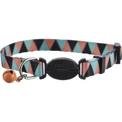 The Good2Go Cat Collar features a bell with Petco patented breakaway buckle. Made for neck sizes 8-12 in. Style: 3321969.