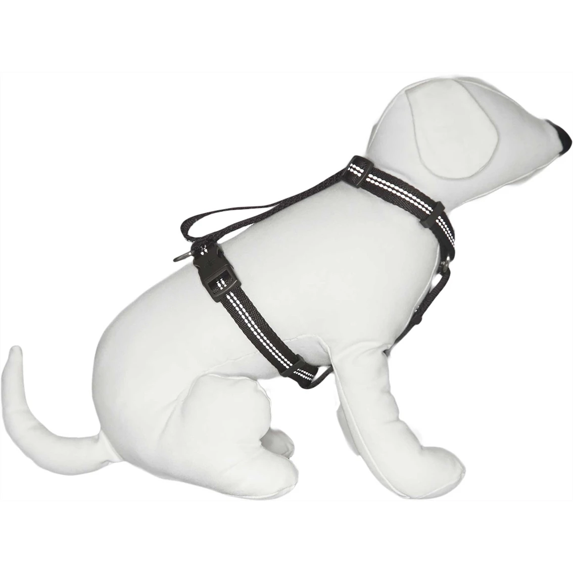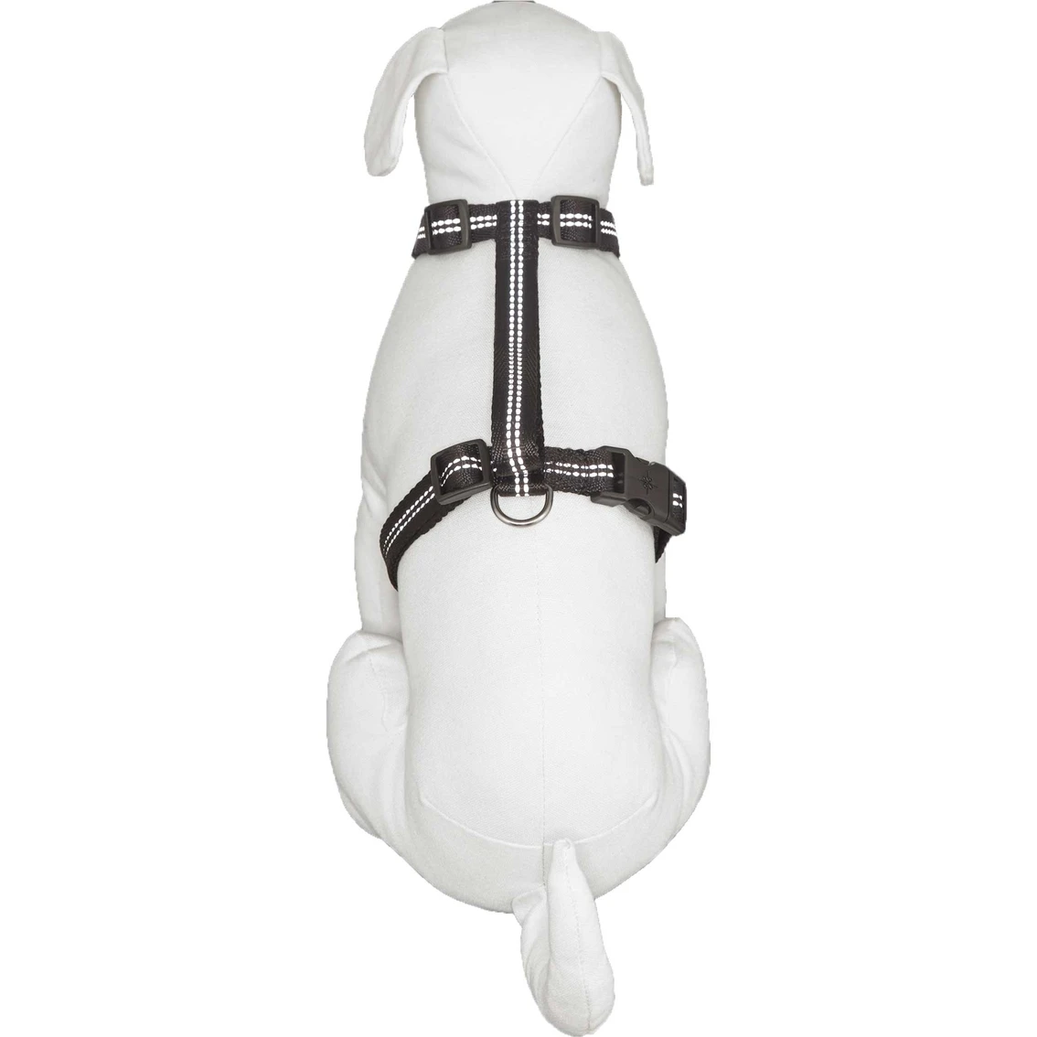 The Good 2 Go Reflective Adjustable Dog Harness provides a way for you to walk your dog confidently during low-light hours. Built-in details reflect light, which enhances visibility to motorists, while a traffic handle at the top of the harness offers you additional control. Size: Small.
