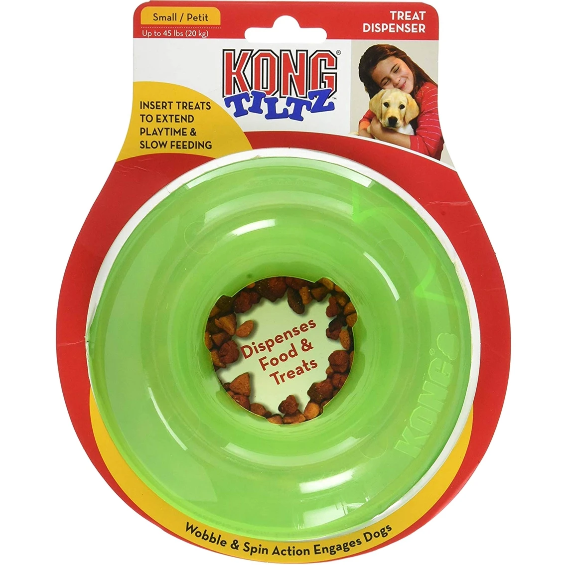 Kong Tiltz is a delightful no-mess treat-dispenser that mentally and physically stimulates your dog to keep them engaged for hours. As your dog tilts, spins and rocks the toy, treats are erratically dispensed for added engagement and enticing fun. Model: PTZ3.