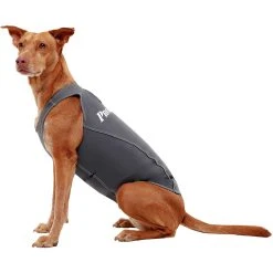 ProDogg Compression Shirt is a non-medical solution to calm and soothe your dog. ProDogg shirt wraps your dog in a consistent pressure proven to help relieve stressors that are caused by loud noises, storms, and thunder. Helps to ease anxiety due hyperactivity, separation, crating, and traveling. Compression products benefit your pet’s health by increasing blood flow, reduce soreness of arthritic stiff hips and joints, and reduce swelling and recovery time due to injuries or surgery. Highly recommended by veterinarian’s, trainers, industry professionals, and dog owners. ProDogg shirt was designed with a convenient front chest pocket for cooling/warming gel, accessible leash opening, glow-in-the-dark logo, and hidden Velcro for comfort and compression adjustability. Single layer breathable Nylon/Spandex is flexible and comfortable for extended wear. Easy wear, easy care. Machine Washable. Made in USA.