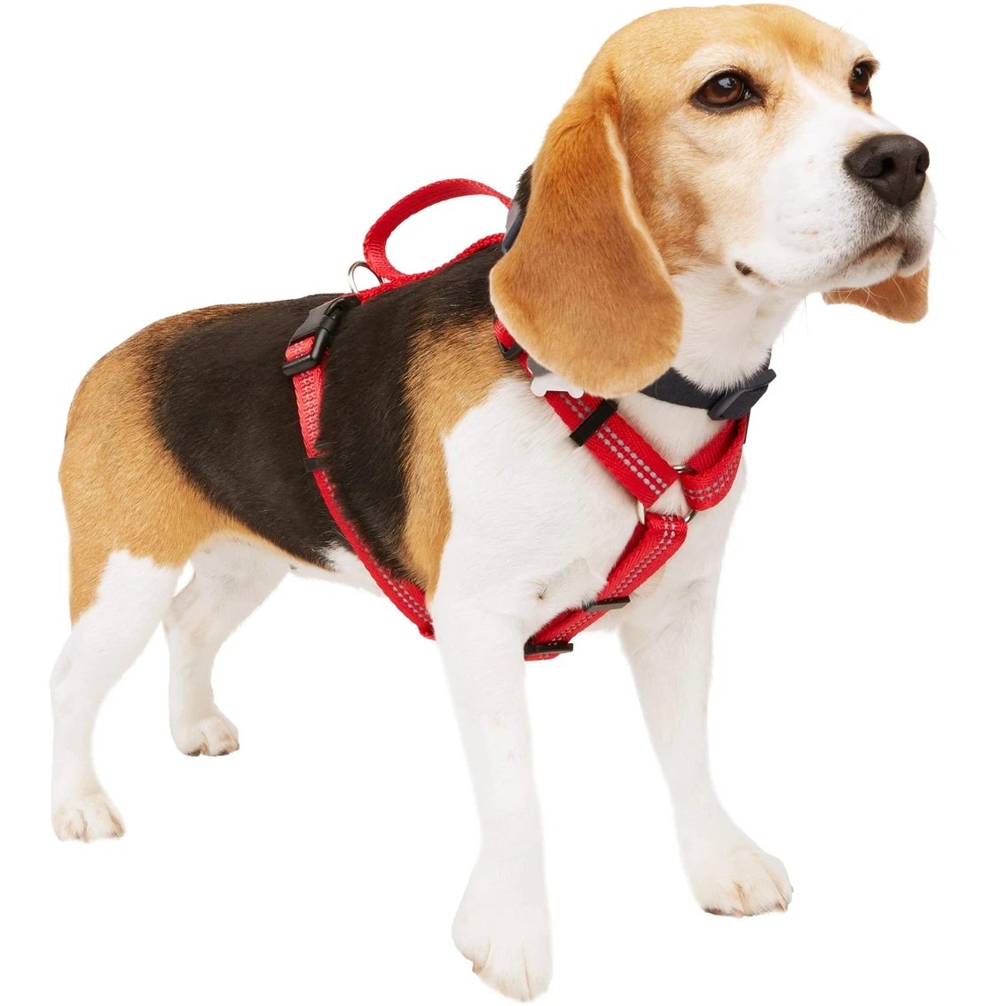 The Youly Reflective Adjustable Padded Dog Harness helps you and your pup be seen with details that reflect light. The handle on the top gives you a place to quickly and easily lift them when needed.